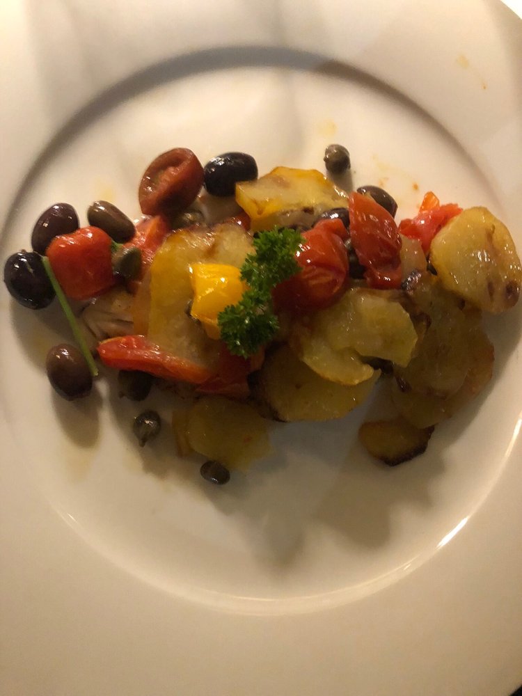 triglie, pinoli, pesto Red mullet, basil pesto, artichokes, potatoes, pine nuts